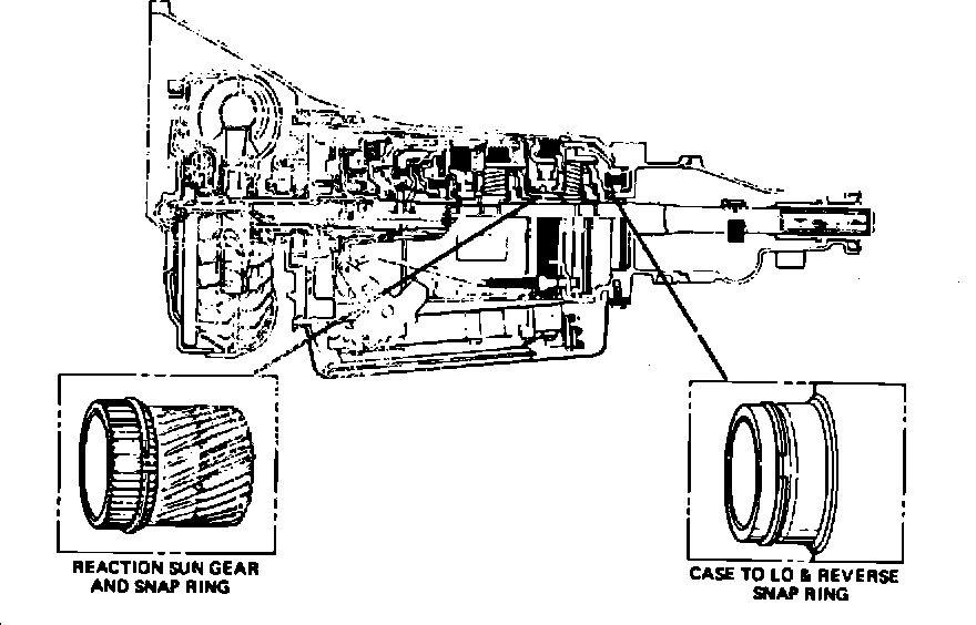 Beginning September 1, 1982, all THM 700-R4 transmissions were built with a revised design snap ring for both the reaction sun gear and the lo and reverse spring retainer to case (see illustration below).