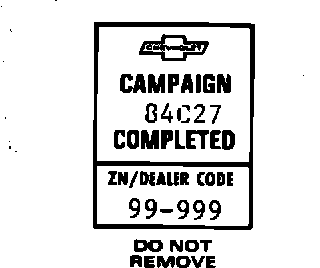 Each vehicle modified in accordance with the instructions outlined in this Product Campaign Bulletin will require a "Campaign Identification Label." Each label provides a space to include the five digit dealer code of the dealer performing the campaign service. This information may be inserted with a typewriter or ballpoint pen.
