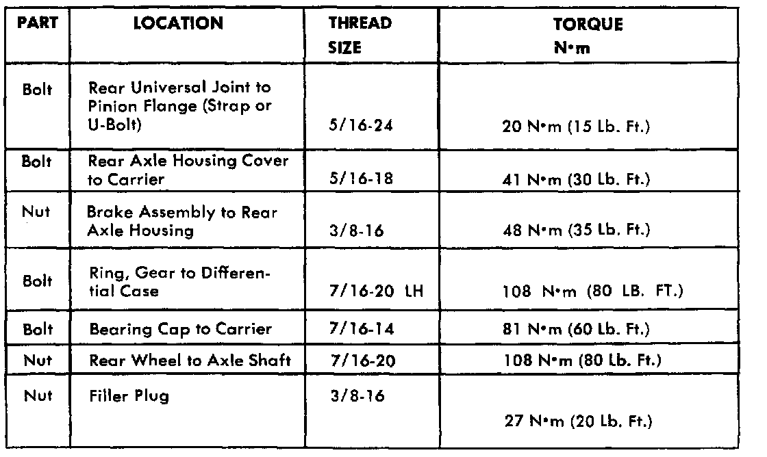 Torque Specifications Table: