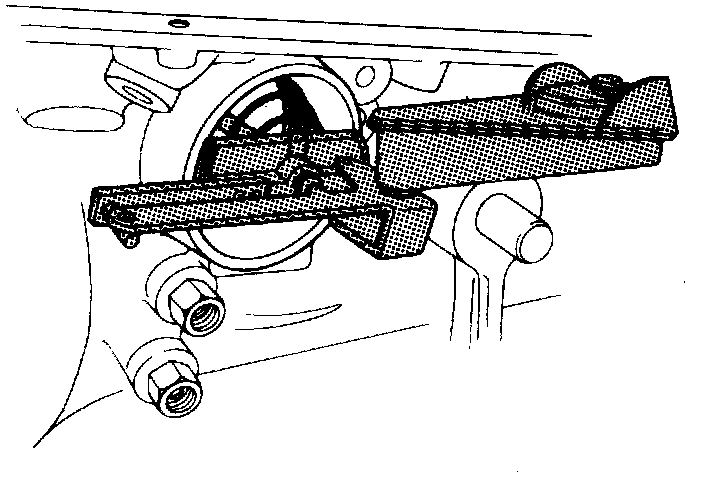 a. Remove oil pump bolt and install an 11 inch bolt and locknut.
