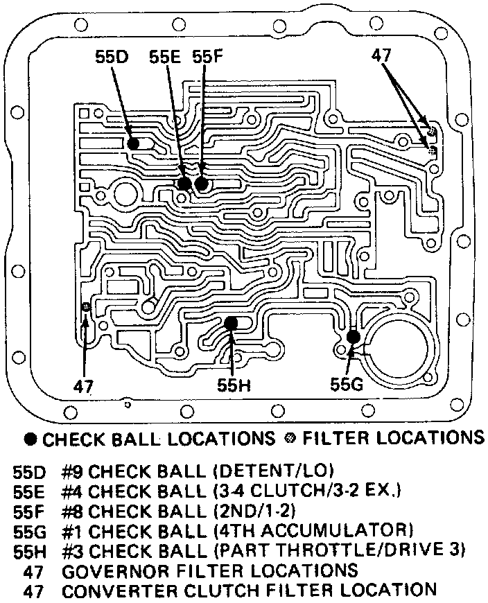 21. Note number of check balls located under valve body, and number of check balls located in case. Remove and ensure to retain check balls.