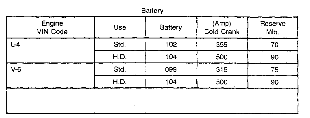 Starting and Charging: Specifications