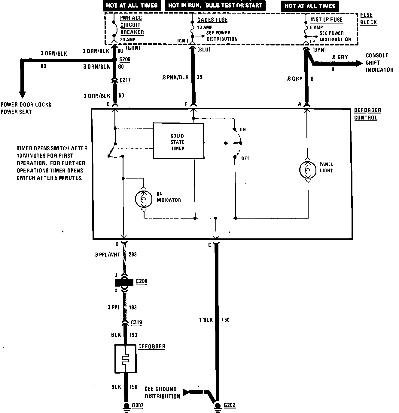 Rear Window Defogger Wiring Circuit: