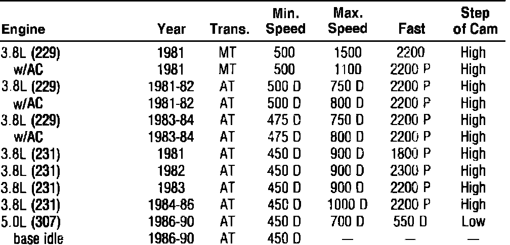 Idle Speed W/Computer Control Specifications - Carbureted: