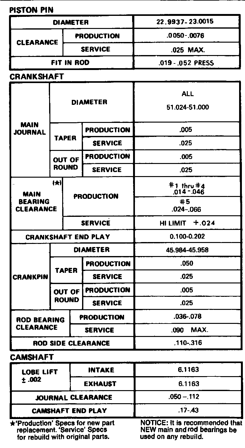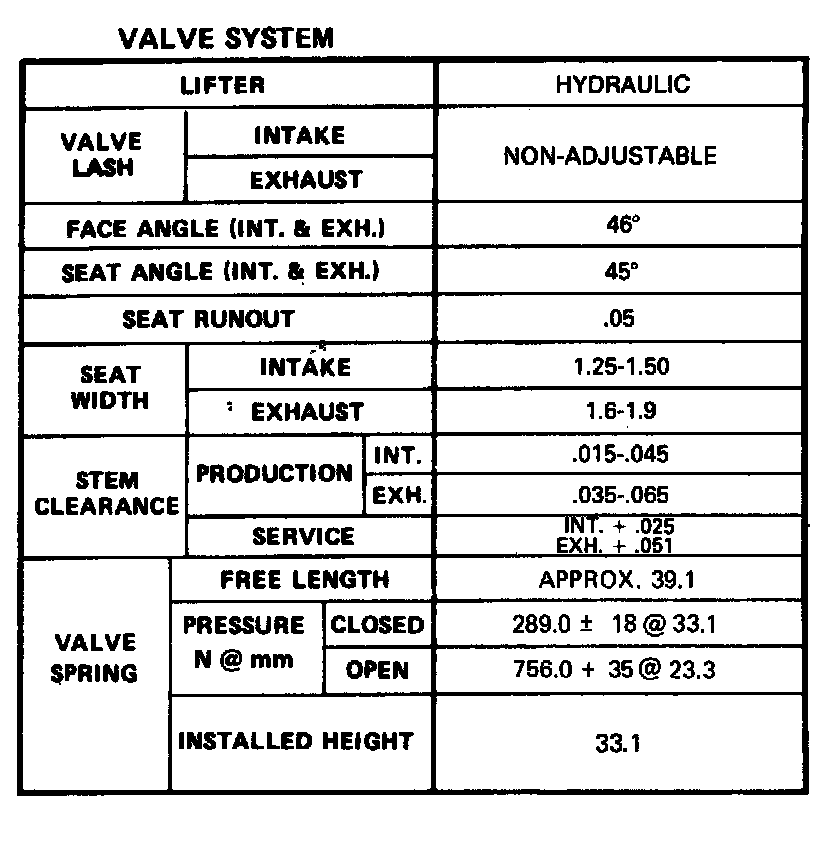 Continued Engine Specifications: