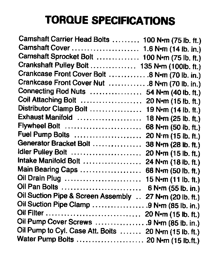 Torque Specifications: