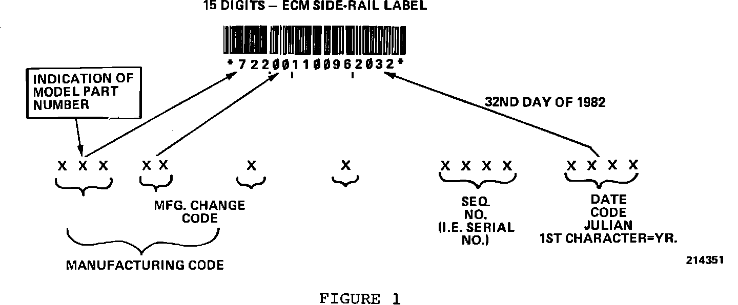 If this happens, no trouble codes will be set. The car will run poorly because only one (1) injector will be operating. The correct identity of the ECM can be determined by checking the manufacturing code on the side of the ECM. Refer to Figure 1 for an example of the manufacturing code. The correct information for each service number is: