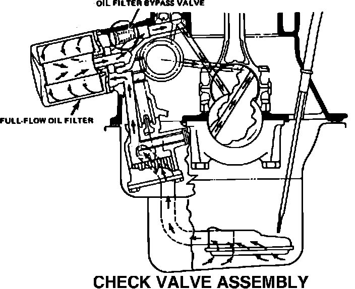 When a repair requires replacement of the engine block, it will be necessary to remove the oil filter bypass valve assembly and reinstall it in the new block. If a new oil filter bypass check valve assembly is required, it will be necessary to order P/N 25010497 thru WDDGM (refer to the illustration below).