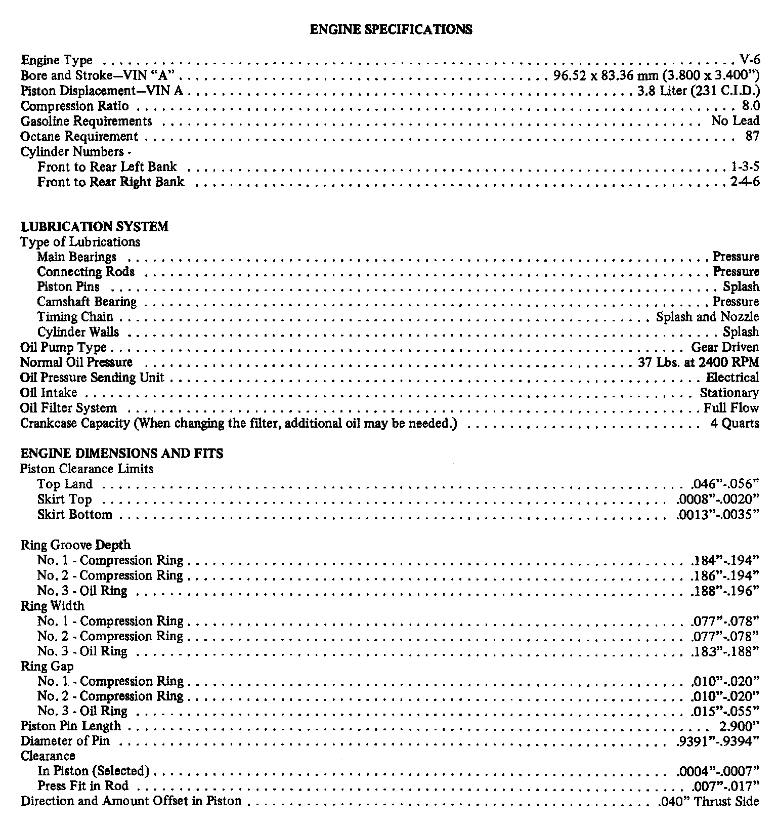 Impala V6-231 3.8L VIN A 2-bbl