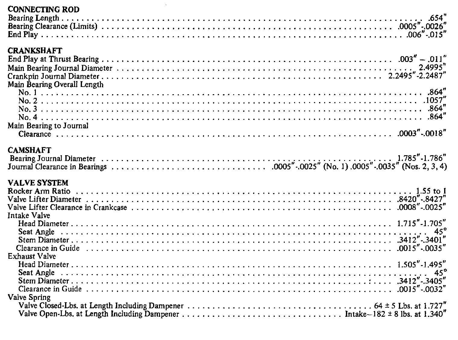 Continued Engine Specifications: