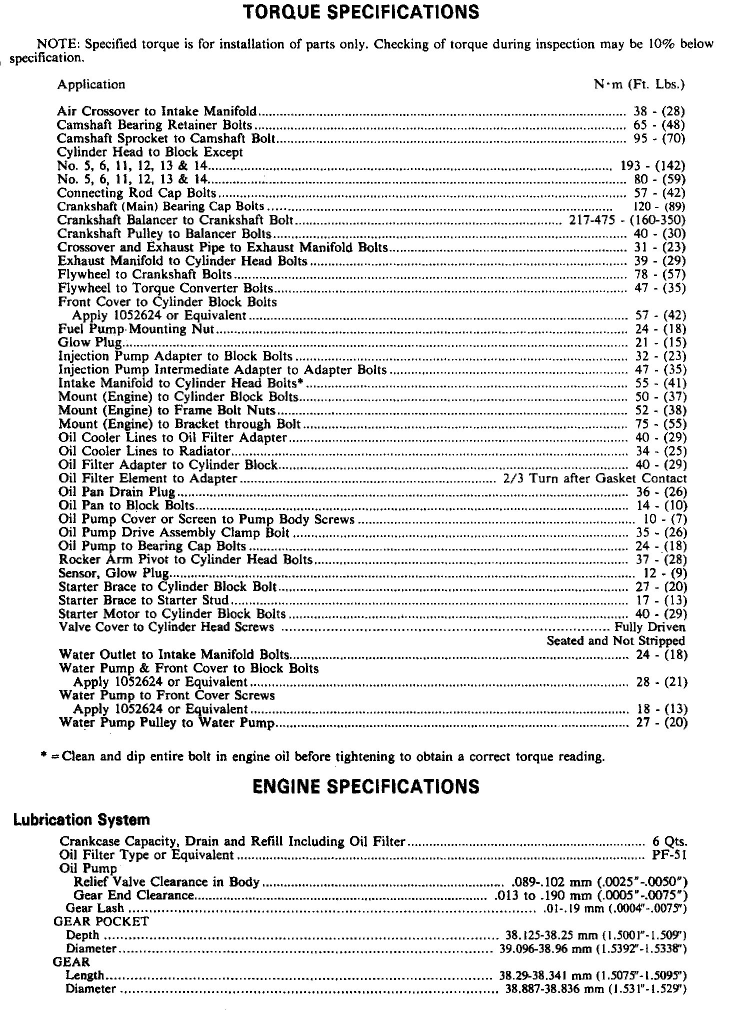 Torque & Engine Specifications:
