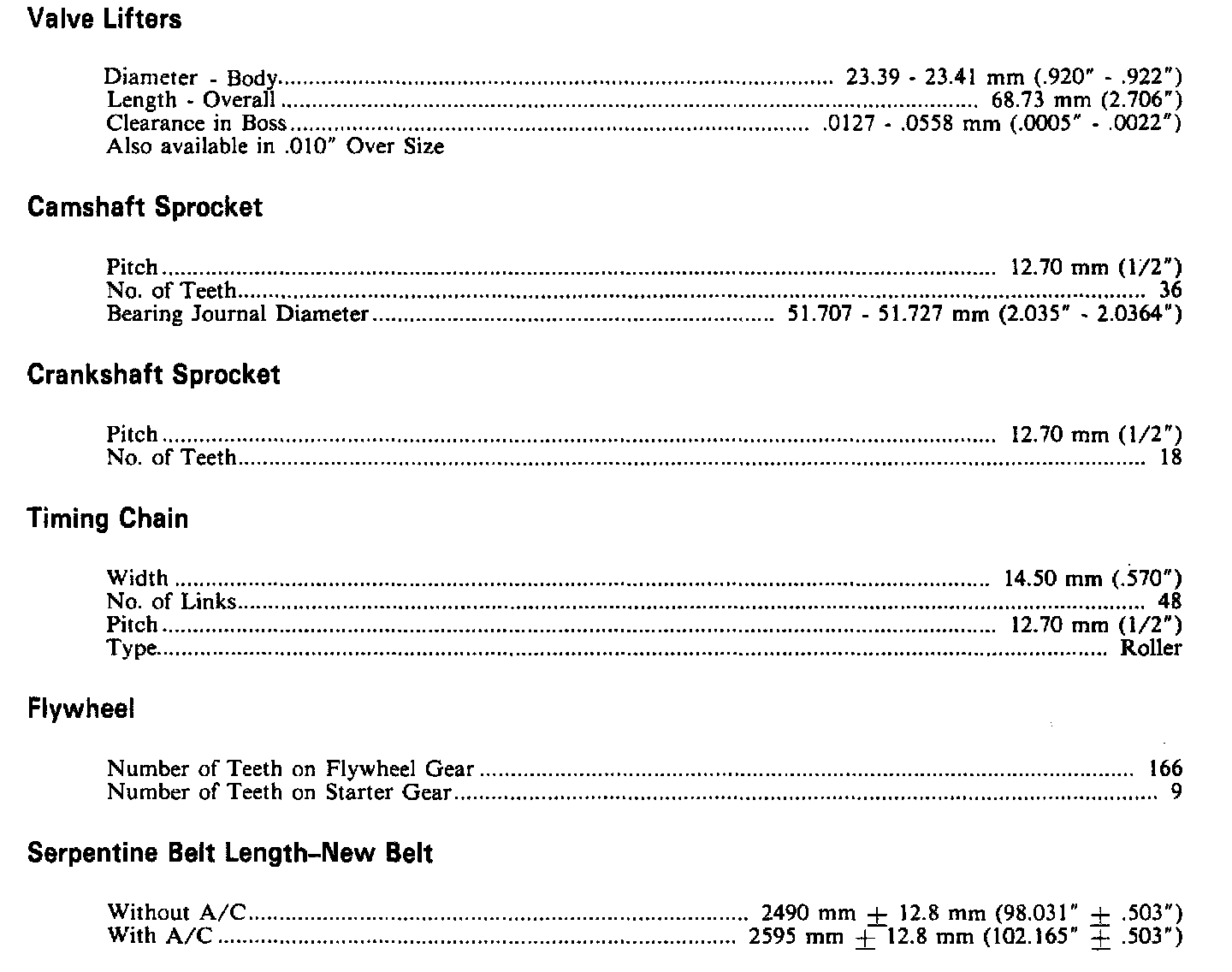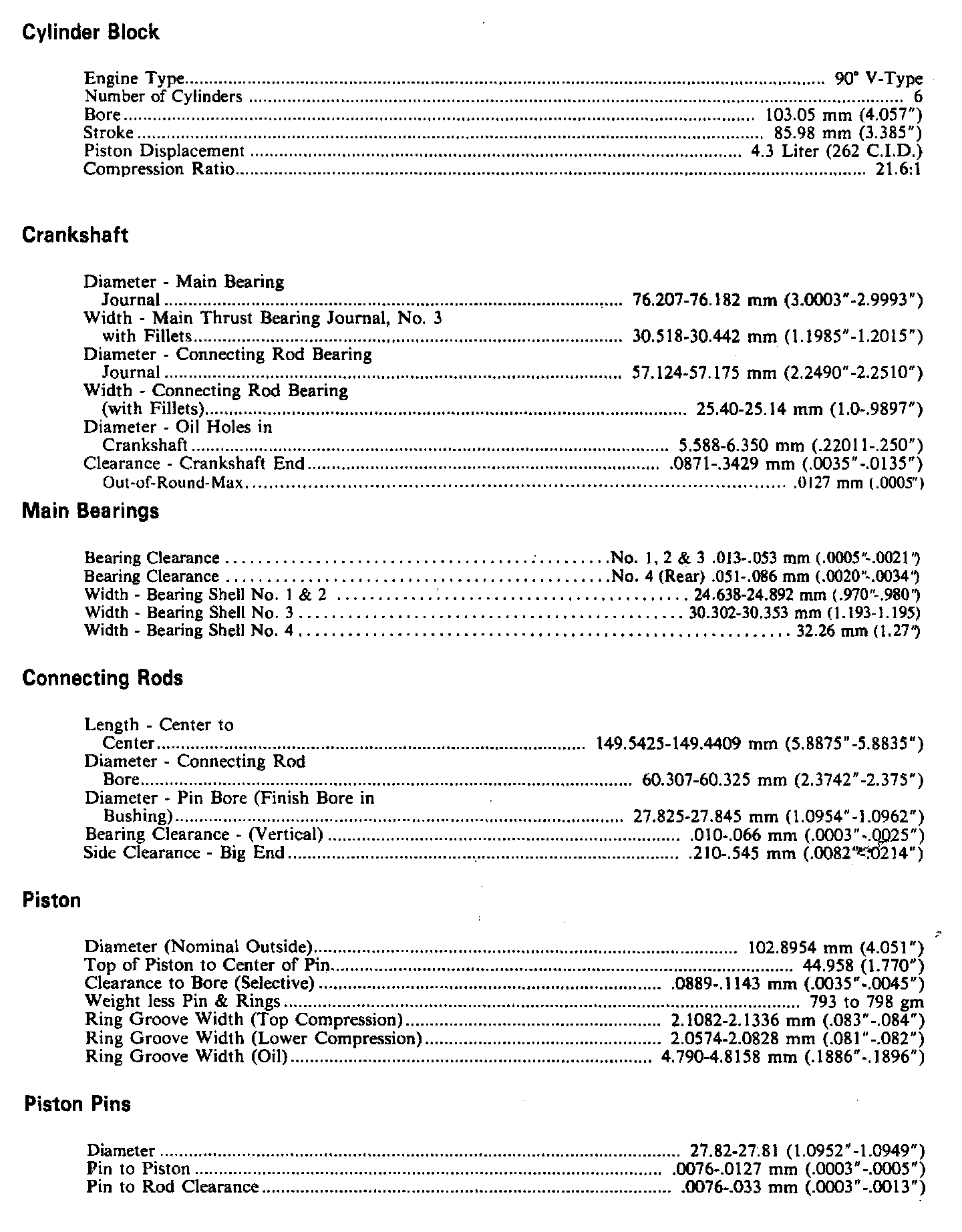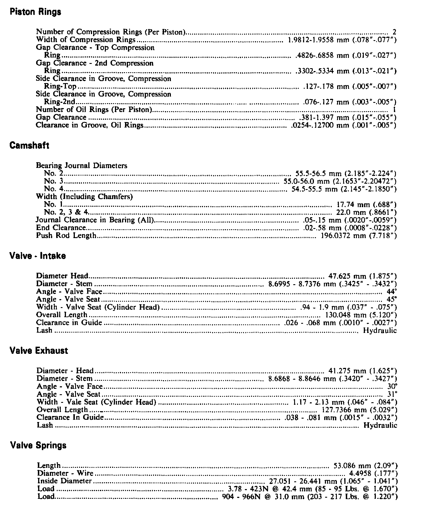 Continued Engine Specifications: