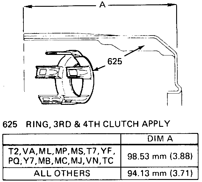 7. Inspect 3-4 clutch apply ring for bent tangs and correct tan length. Refer to image.