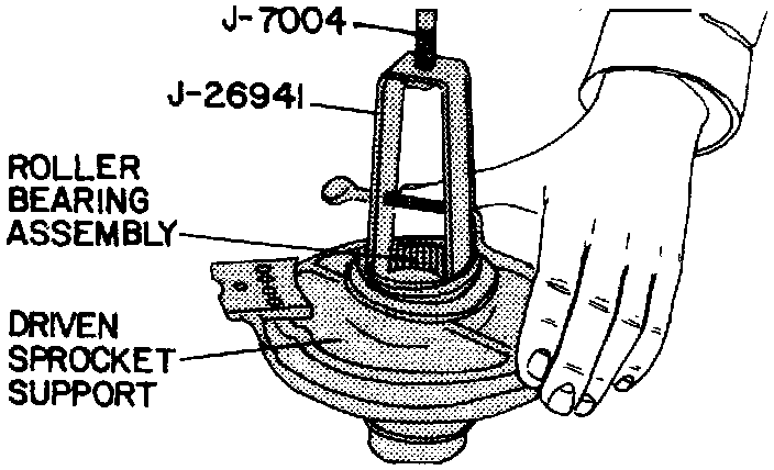 3. Check driven sprocket bearing assembly for damage. If replacement is necessary, proceed as follows: