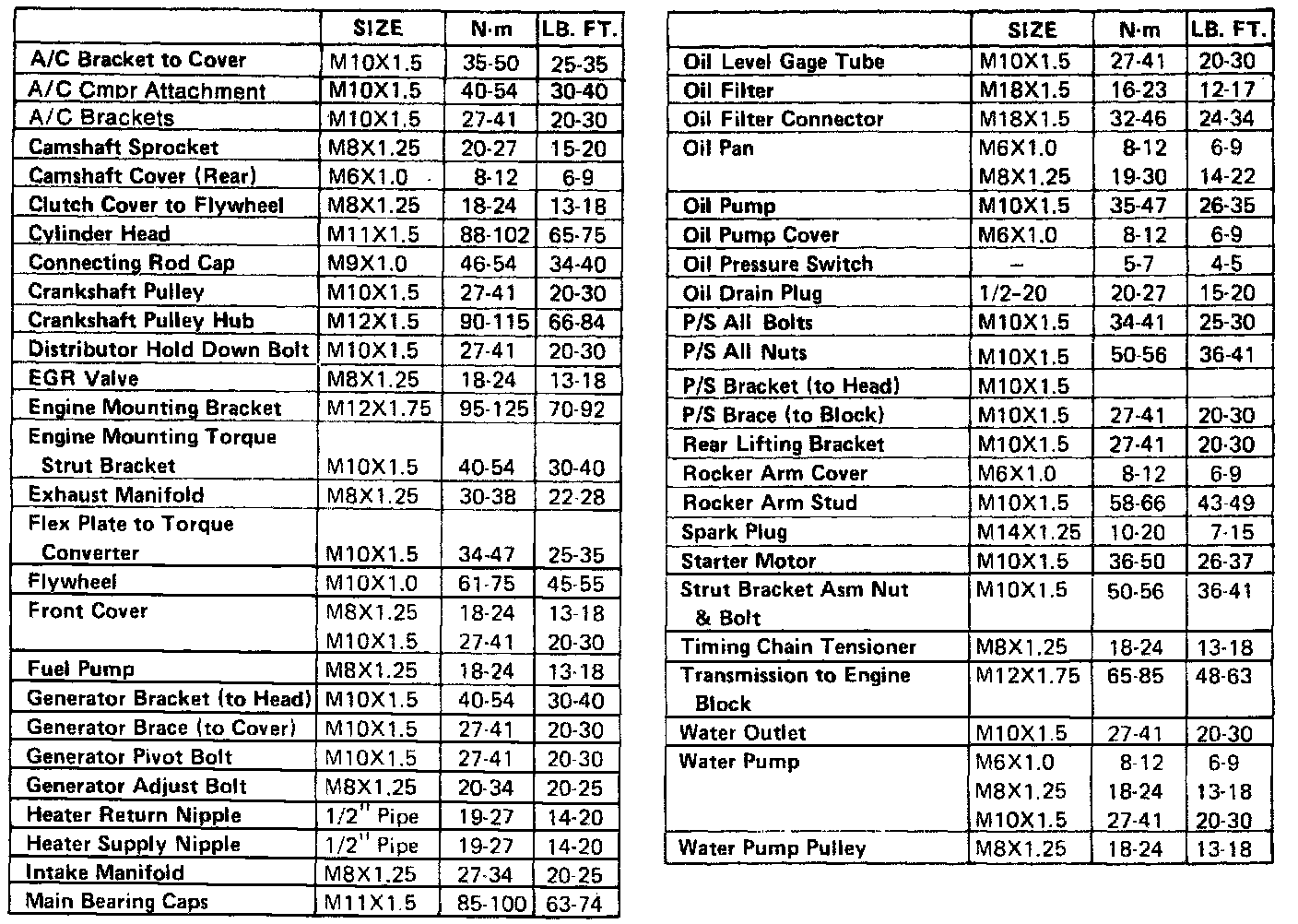 Torque Specifications: