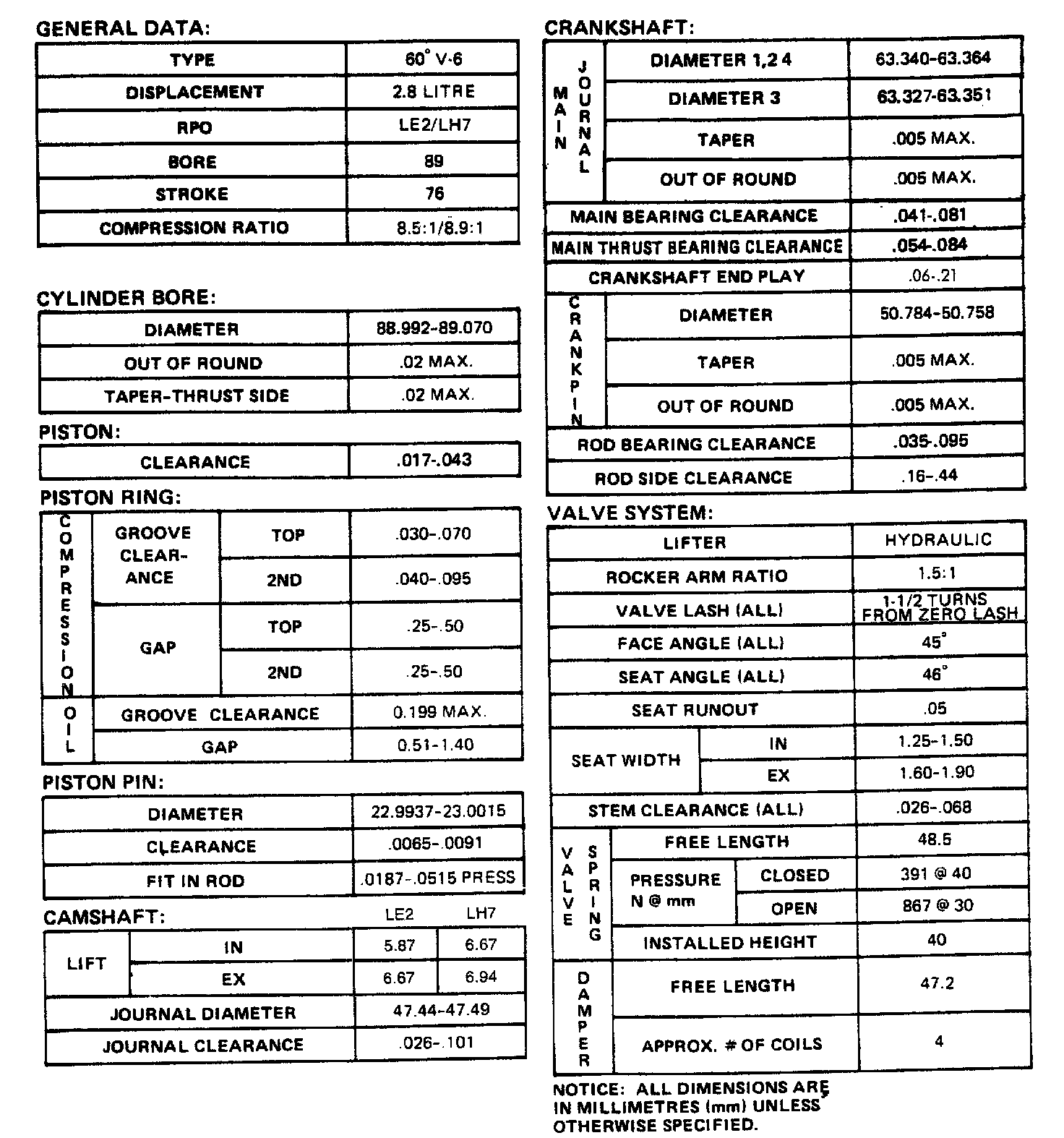 Engine Specifications: