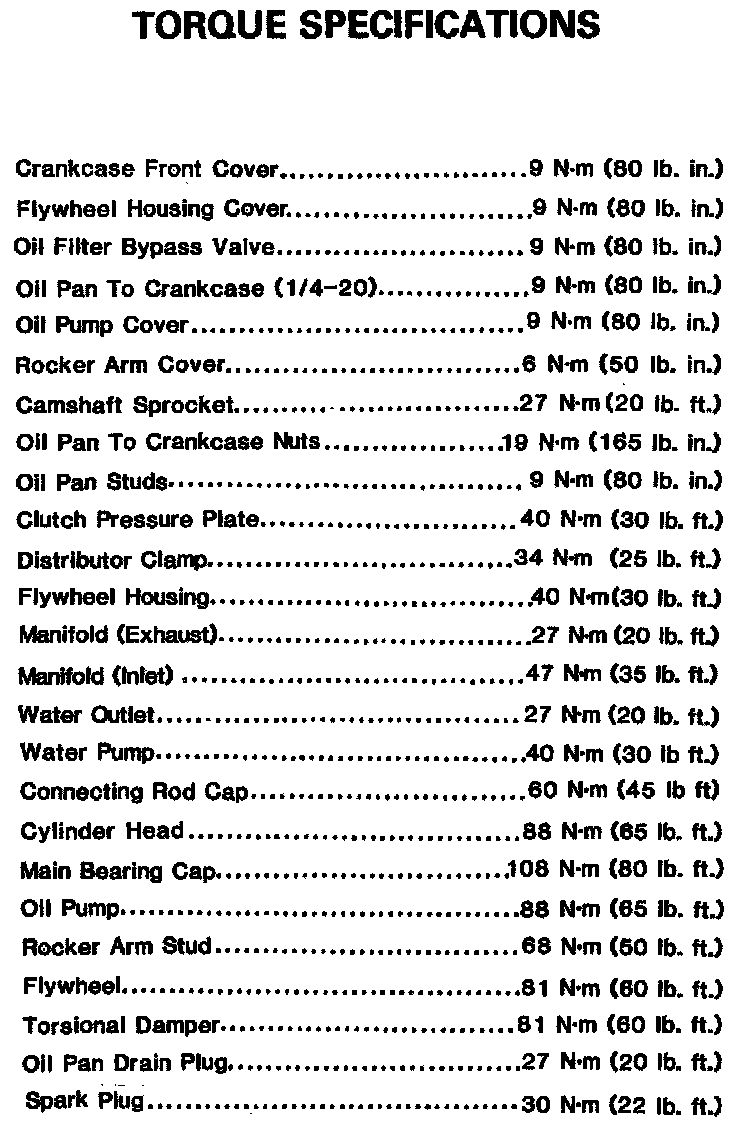 Torque Specifications: