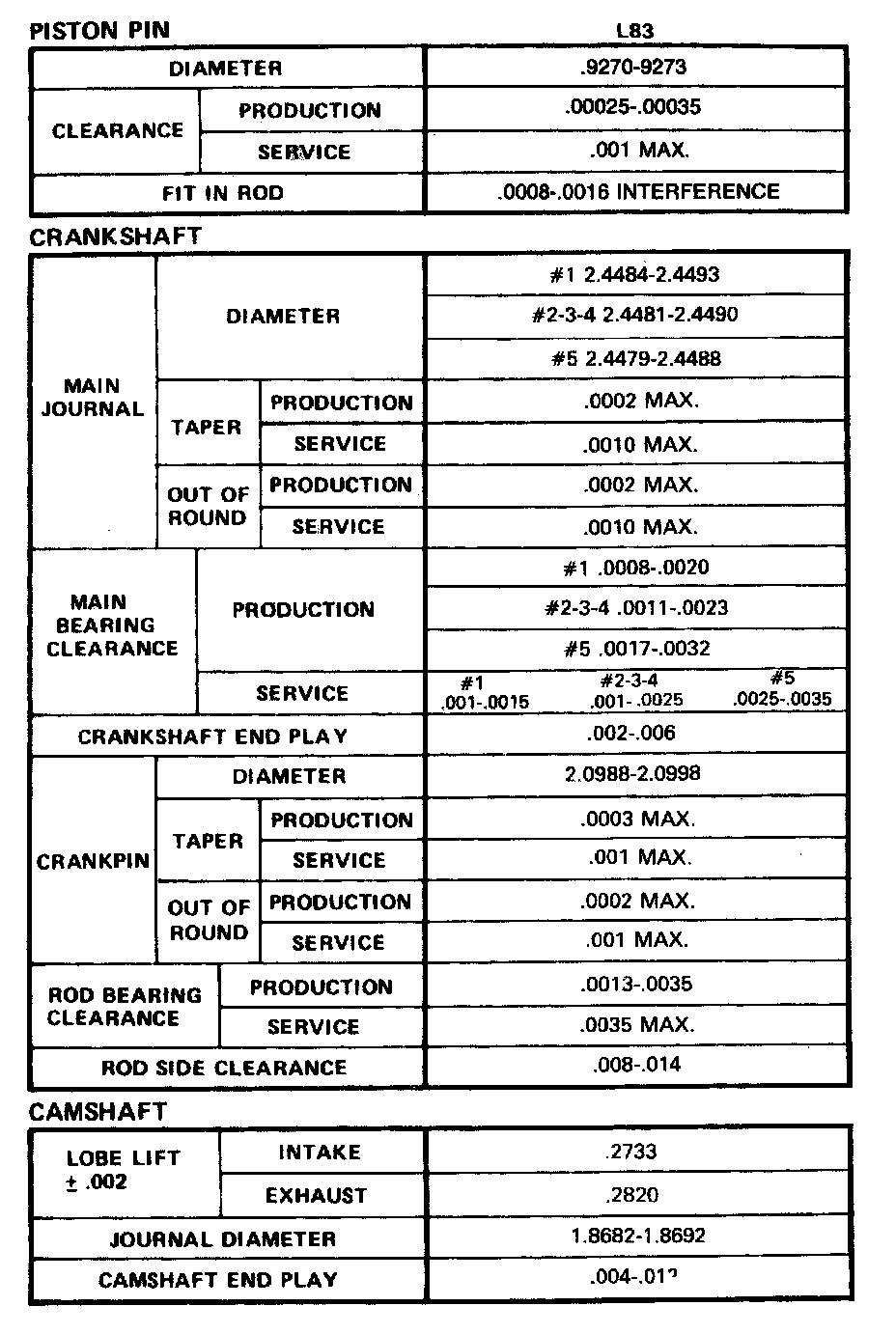 Engine Specifications: