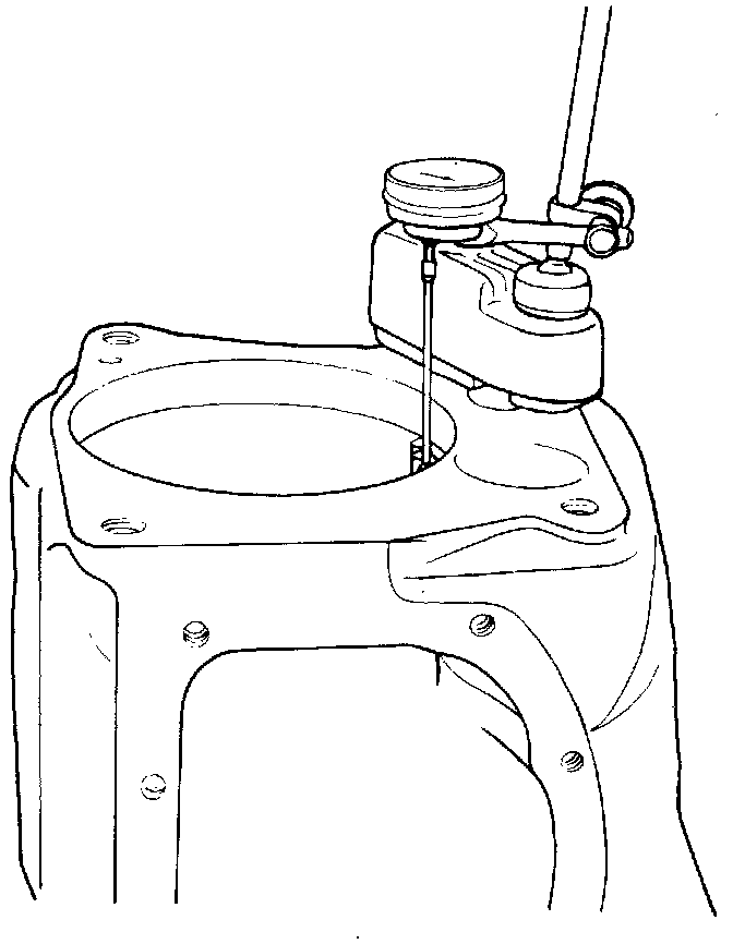 6. Install a dial indicator, see figure, and check endplay. Endplay should be 0.025 inch. If endplay is greater, new thrust washer must be installed.