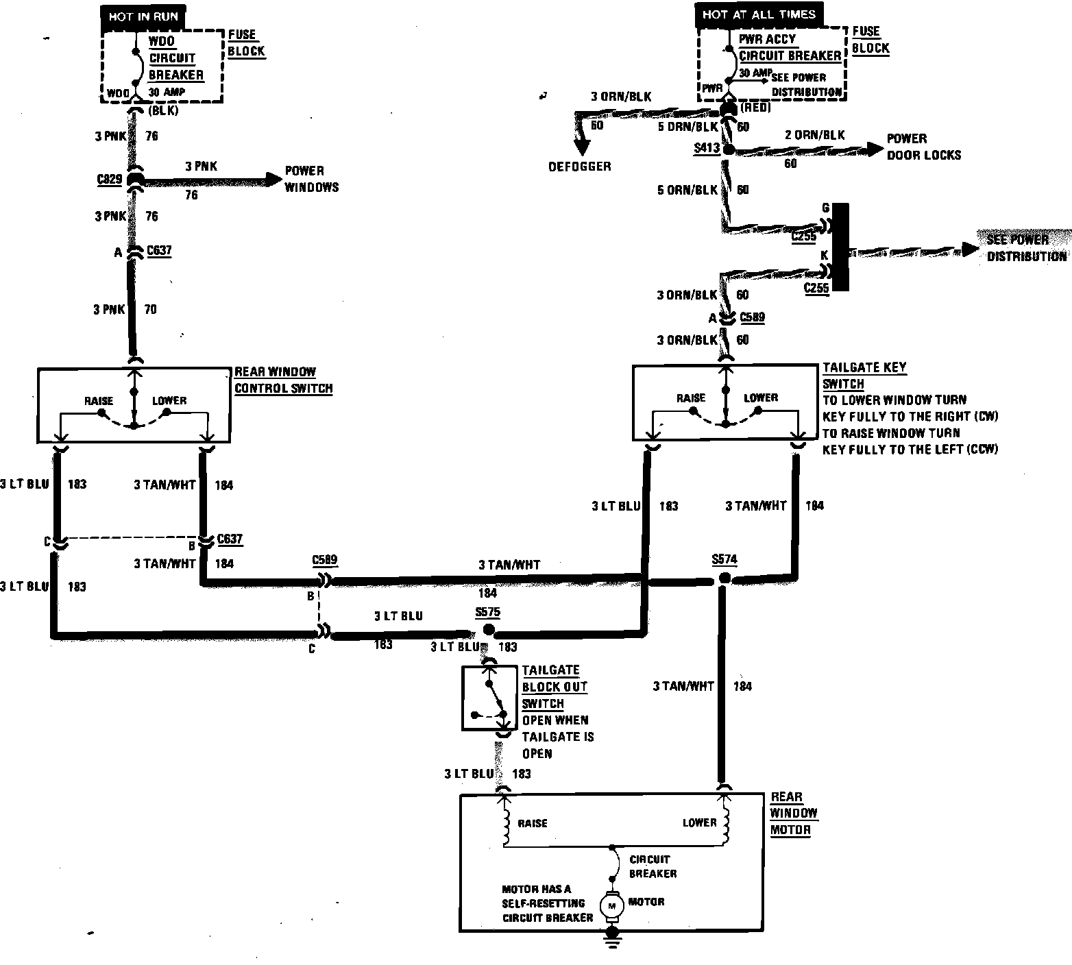 Tailgate Power Window Wiring Circuit: