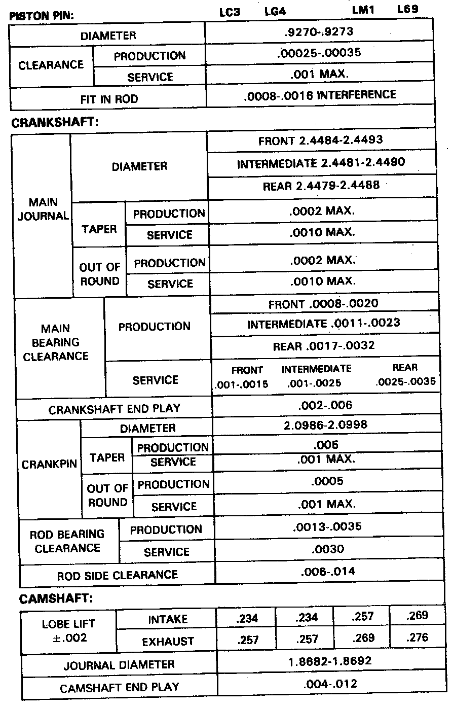 Service Specifications - Small Block (Incl. 229 V6):