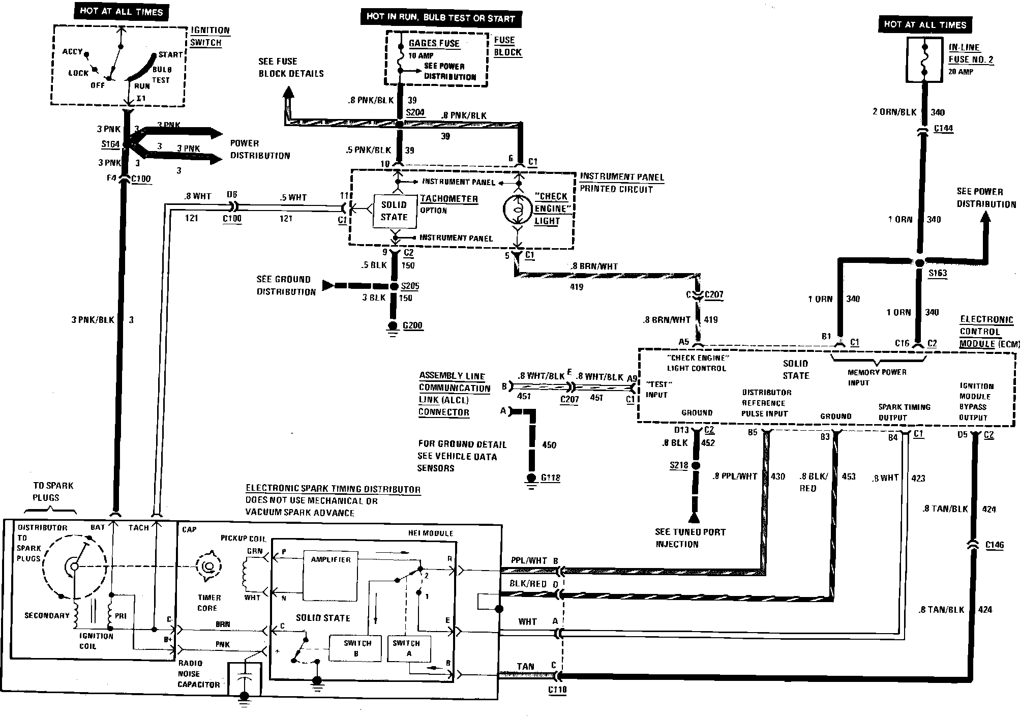 Tuned Port Fuel Injection (Check Engine Light, Ignition & Tachometer) Wiring Circuit: