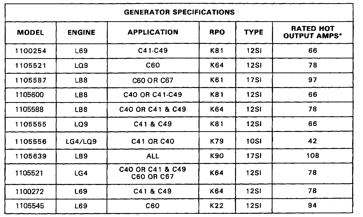 ALTERNATOR SPECIFICATIONS