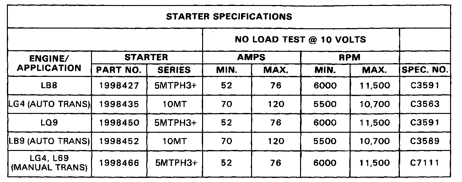 STATER SPECIFICATIONS