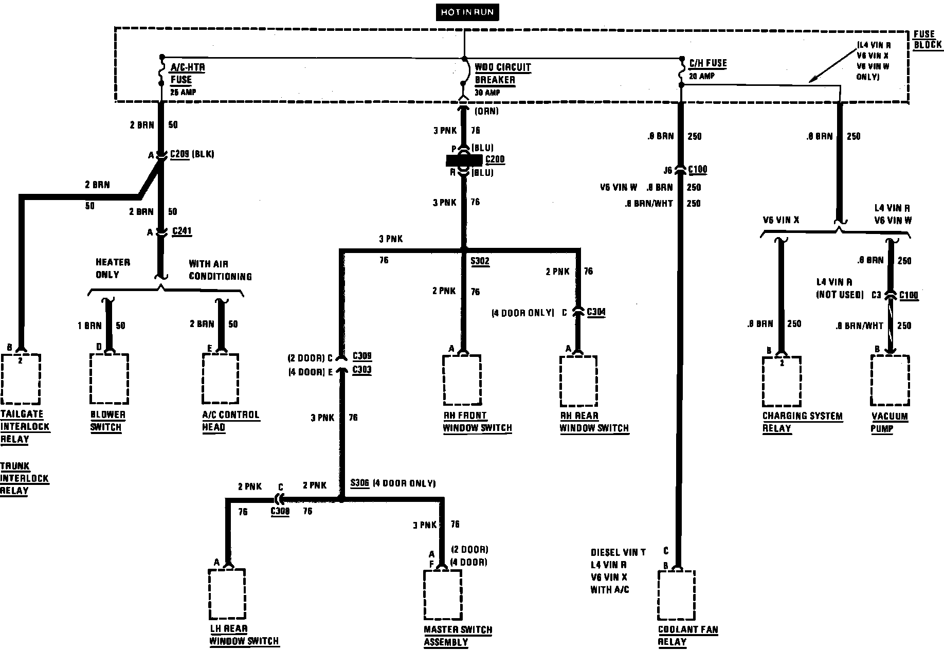 Fuse Block Details-Window Door Operation Circuit Breaker, A/C Heater Fuse & C/H Fuse: