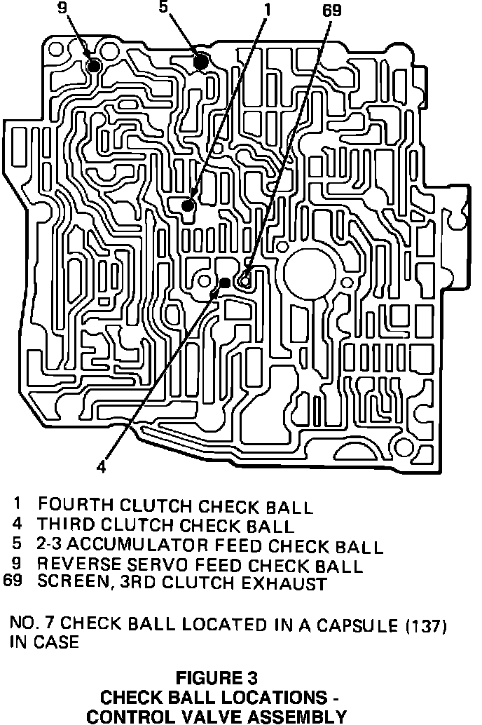 FIGURE 3 CHECK BALL LOCATIONS - CONTROL VALVE ASSEMBLY: