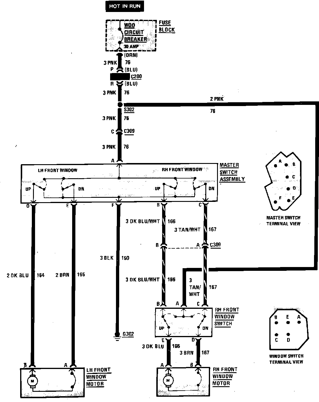 Fig. 232 Power Window Wiring Circuit - 2 Door: