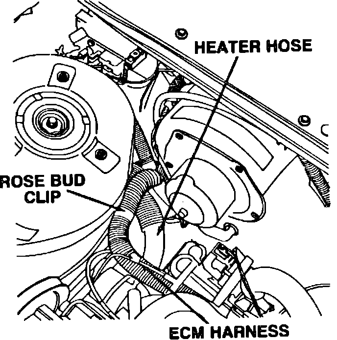 6. Disconnect the heater hose and route hose around the ECM wiring harness