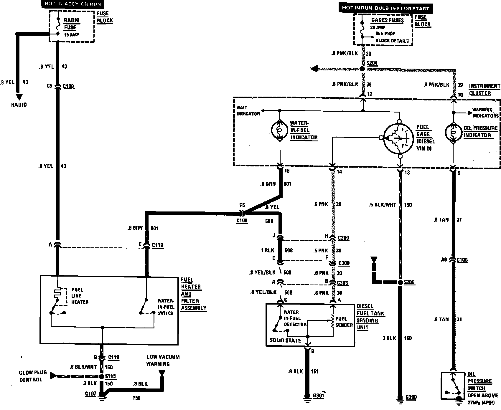Fig. 11 Diesel Fuel Control Wiring Circuit. 1985 Chevette: