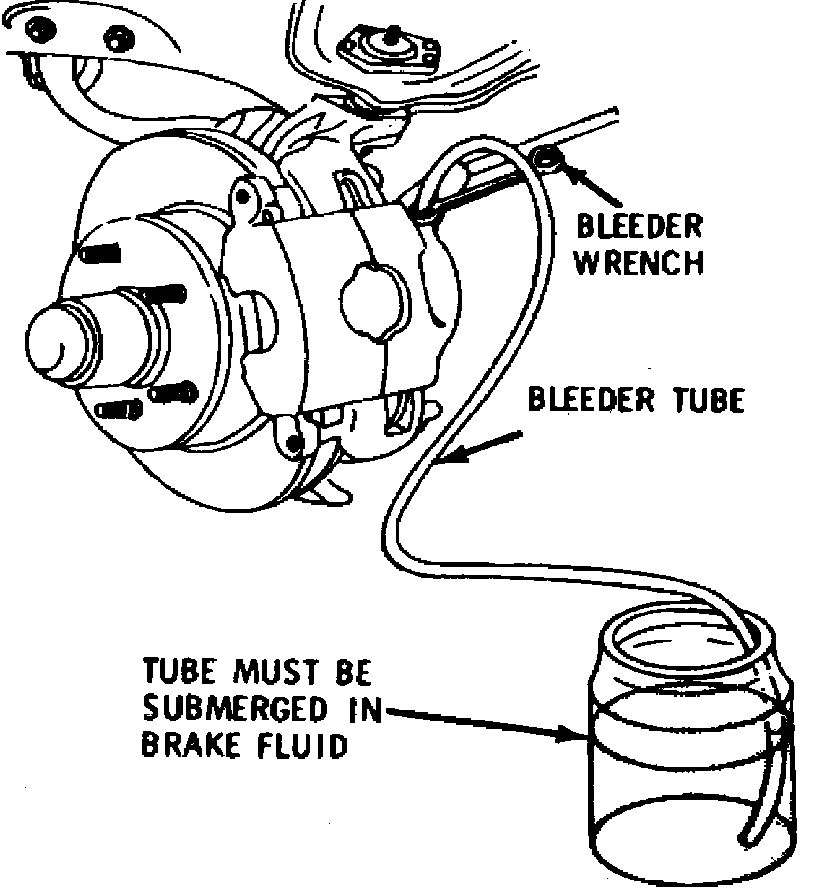 Flushing is performed at each wheel in the same manner as the bleeding operation except that the bleeder valve is opened 11-2 turns and the fluid is forced through the lines and bleeder valve until it emerges clear in color, Fig. 27. Approximately one quart of clean brake fluid is required to flush the hydraulic system. After completing the flushing operation at all bleeder valves, check to ensure the master cylinder is filled to the proper level.