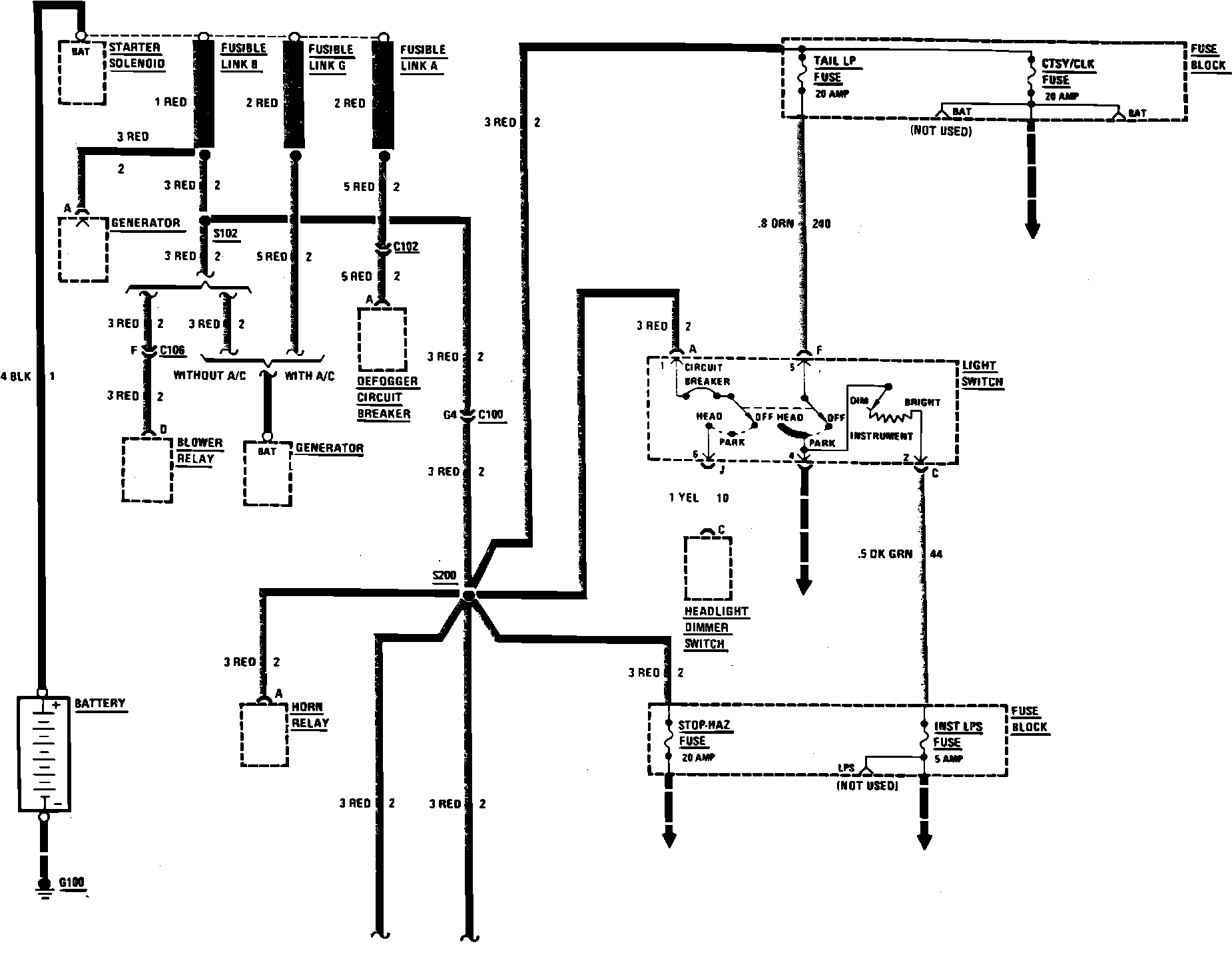 Fig. 26 Power Distribution Wiring Circuit, Gas. 1985 Chevette & T1000: