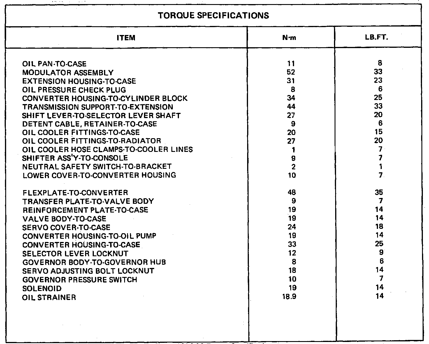 Torque Specifications: