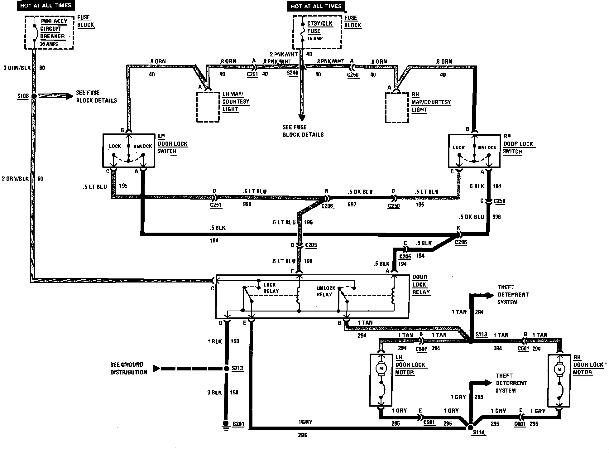 Power Door Lock Wiring Circuit:
