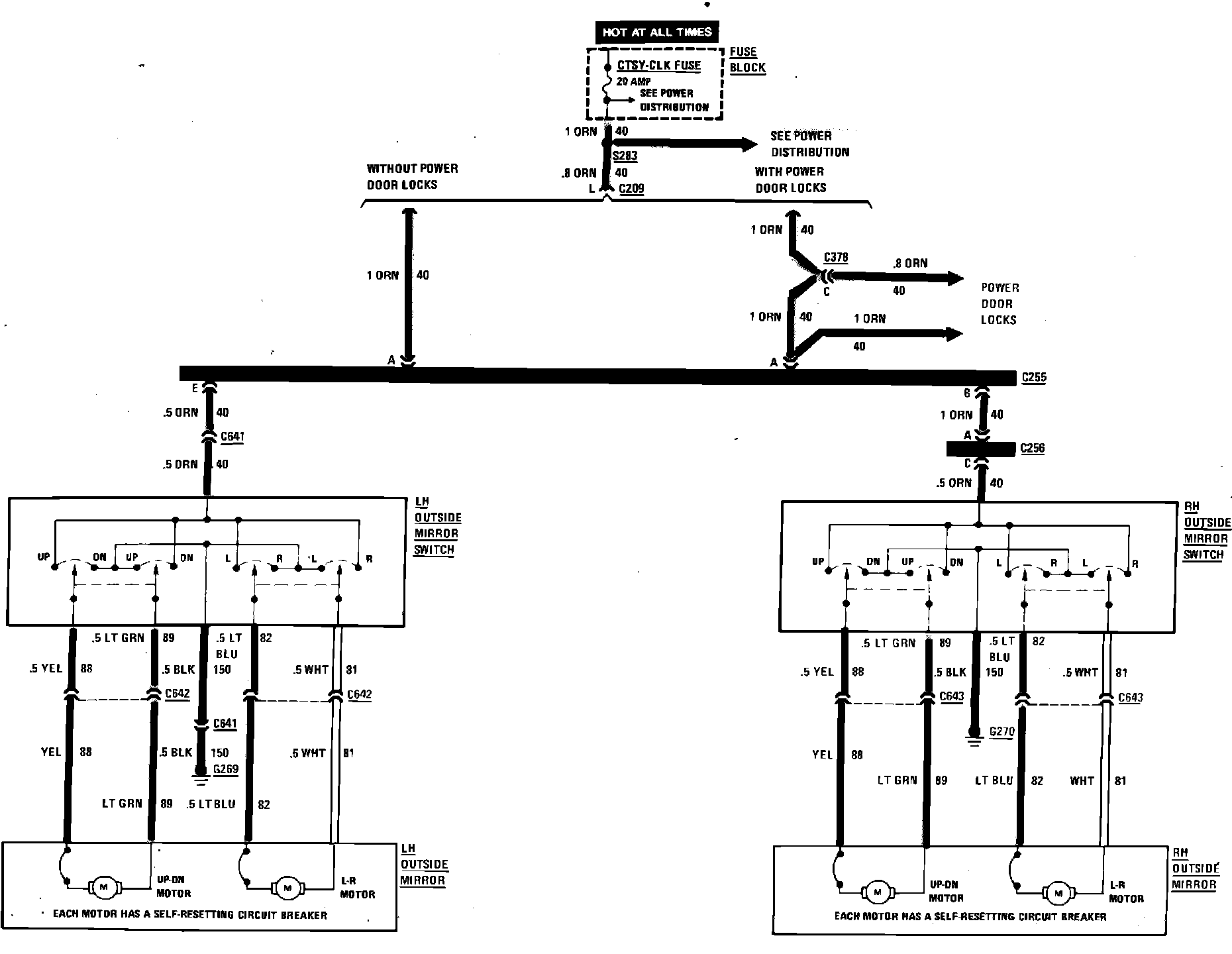 Power Remote Mirror Wiring Circuit: