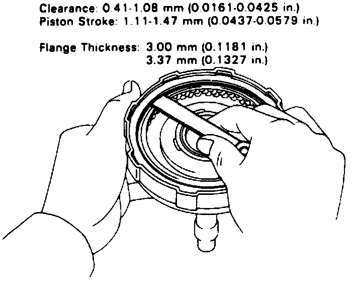 7. Using a suitable feeler gauge, measure clearance between flange and snap ring. If clearance is not as specified in Image, select a flange that will bring clearance within specifications.