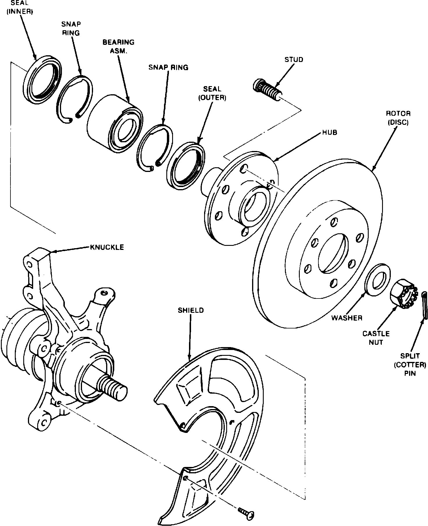 Fig. 9 Exploded view of steering knuckle & hub assembly: