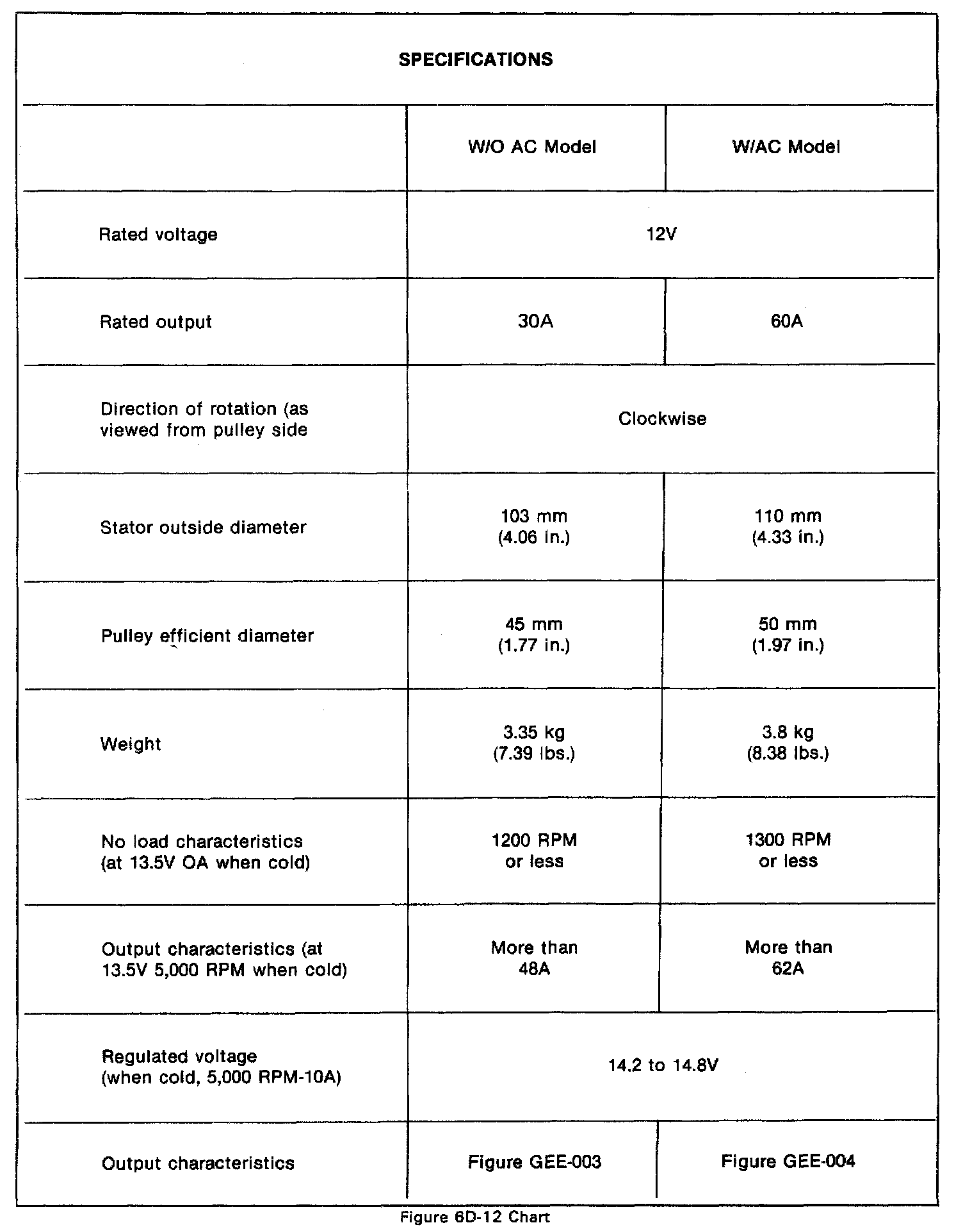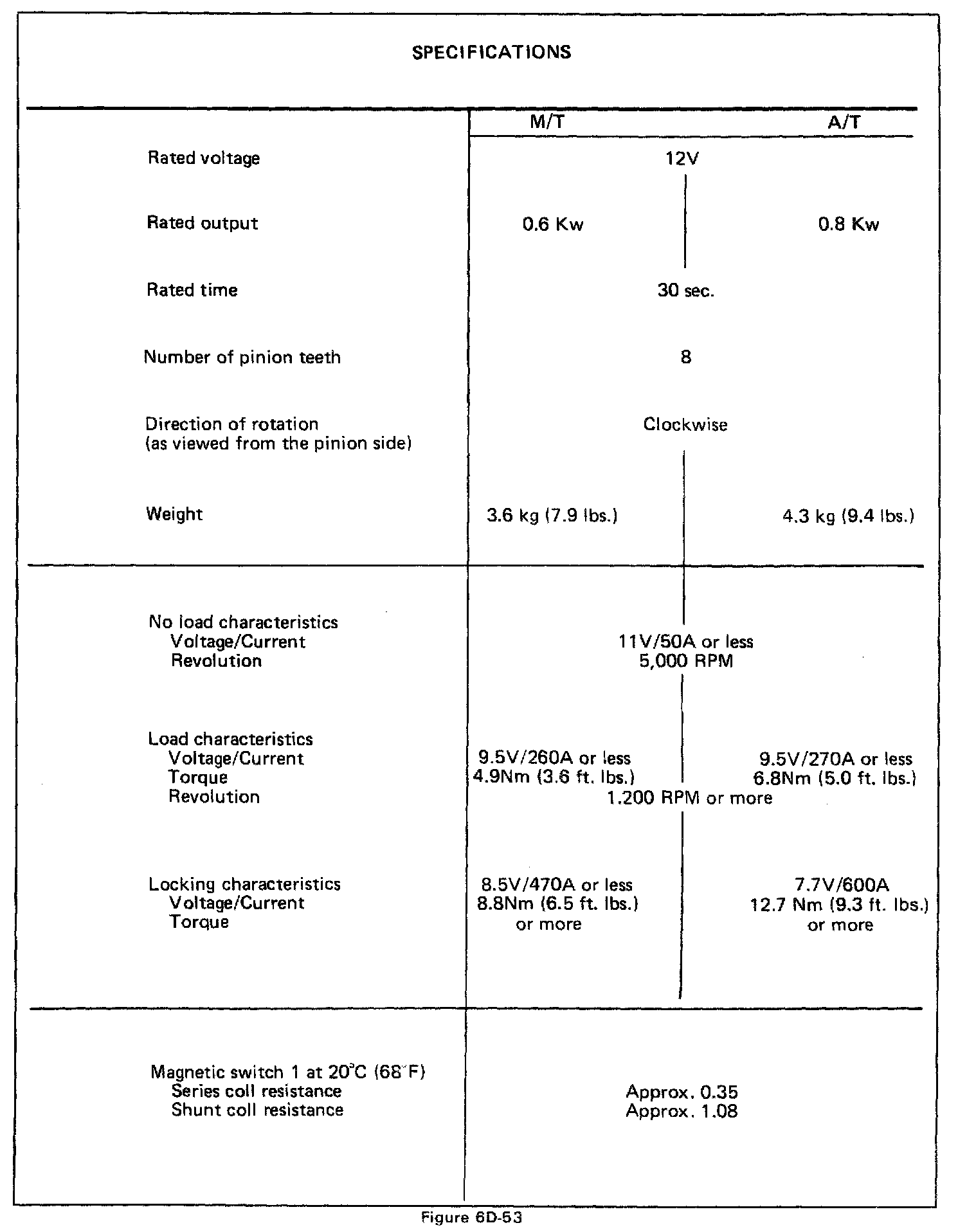 Starting and Charging: Specifications