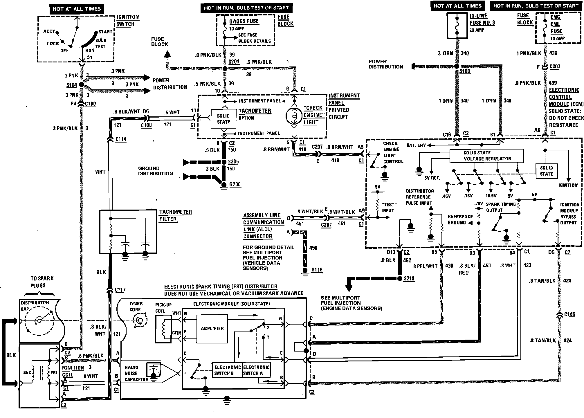 Multi-Point Fuel Injection Wiring Circuit (Check Engine Lamp, Ignition & Tachometer):