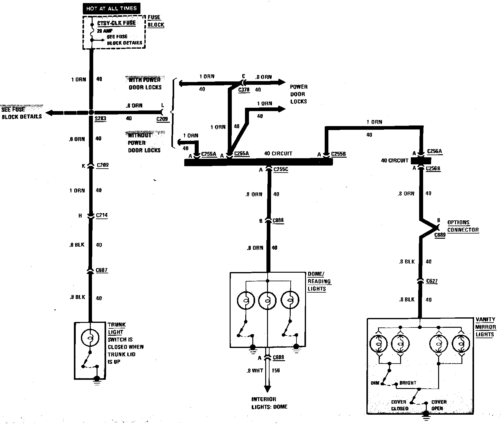 Reading, Trunk & Vanity Mirror Lamps Wiring Circuit: