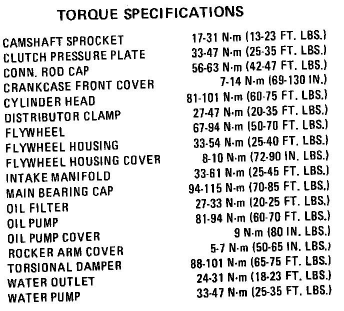 Torque Specifications: