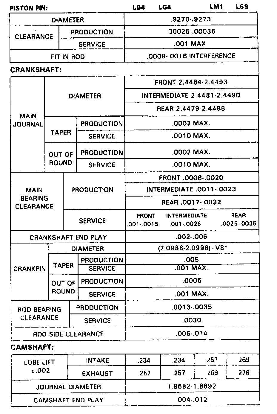 Engine Specifications:
