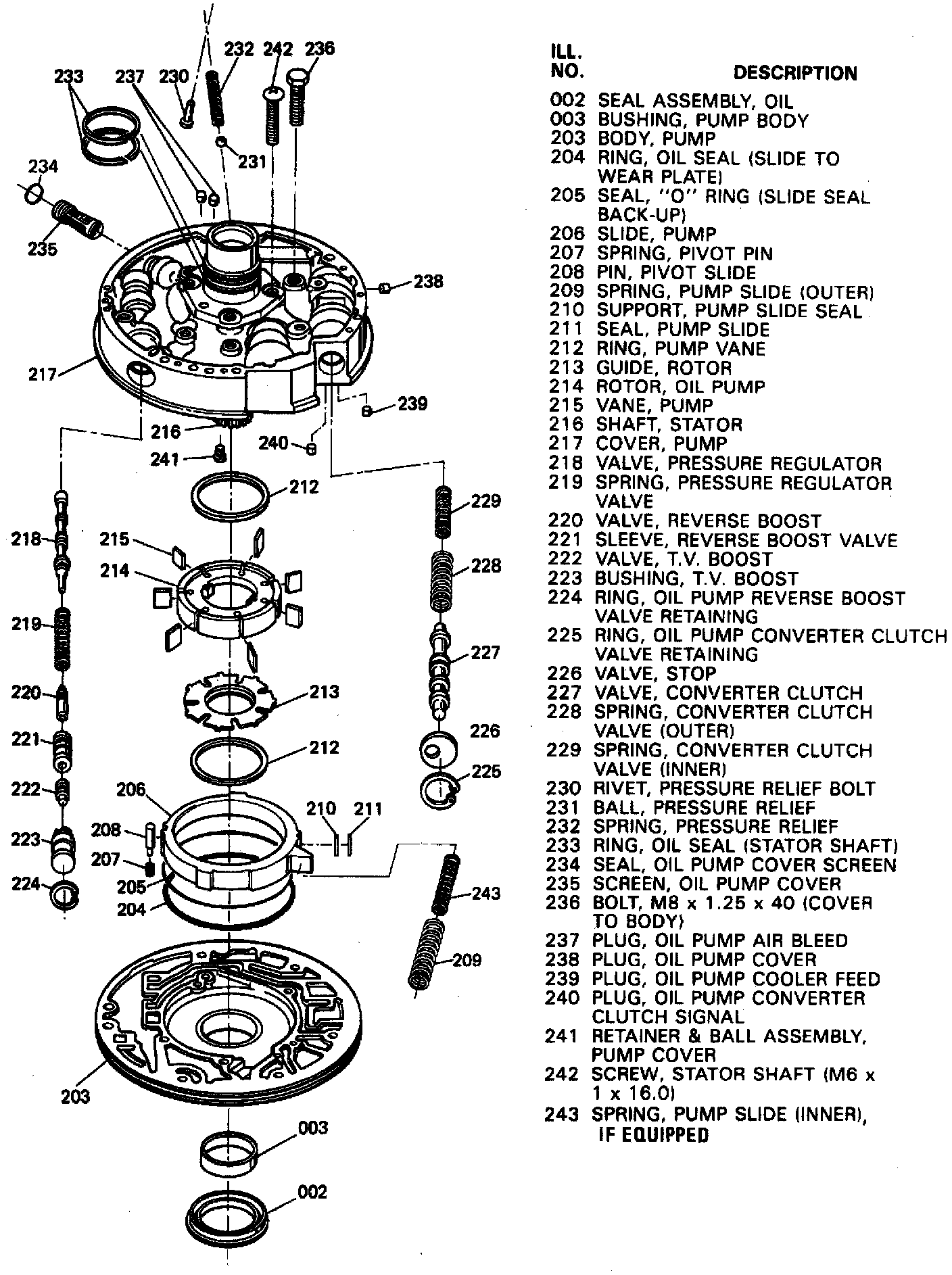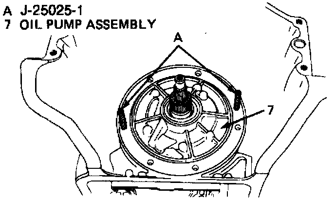 10. Install oil pump assembly attaching bolts and washers, then torque bolts to specification. Rotate transmission to a horizontal position. If transmission is assembled properly, turbine shaft should turn by hand. If not, identify problem and correct.