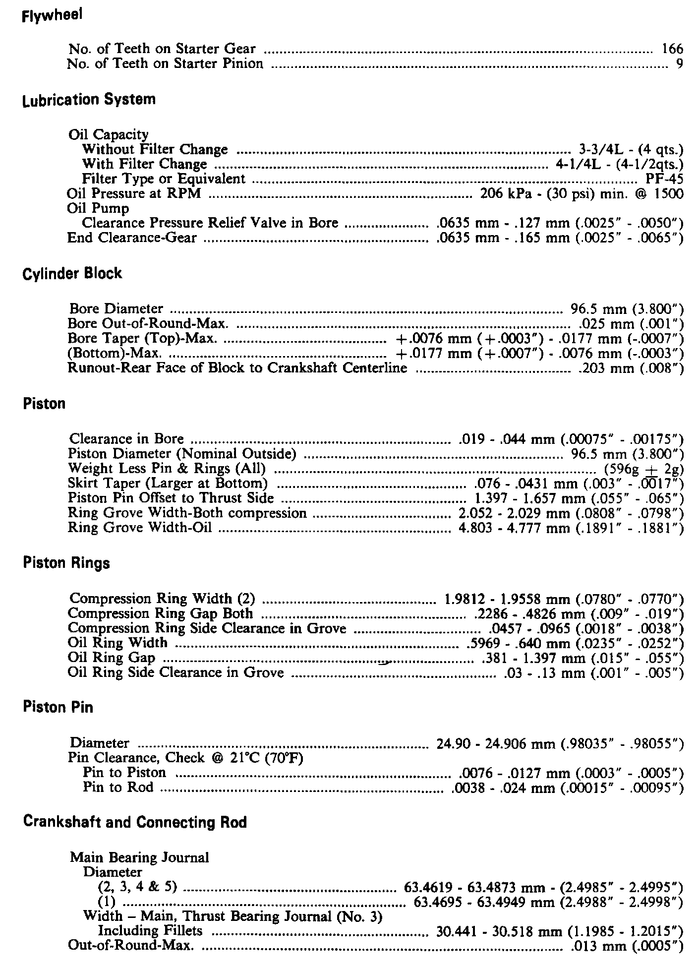 Dimension & Clearance Specifications - Engine
