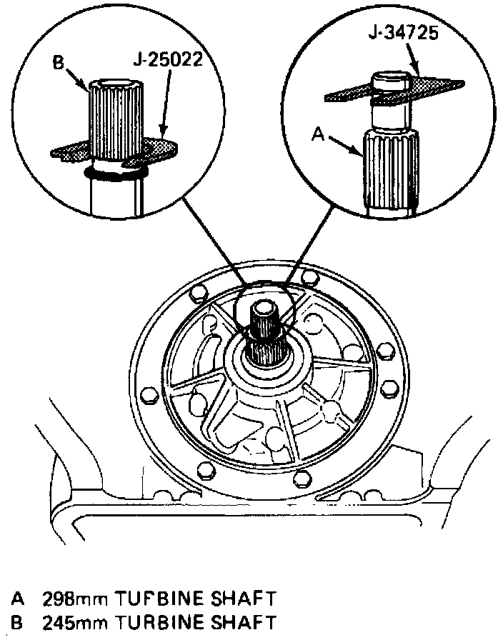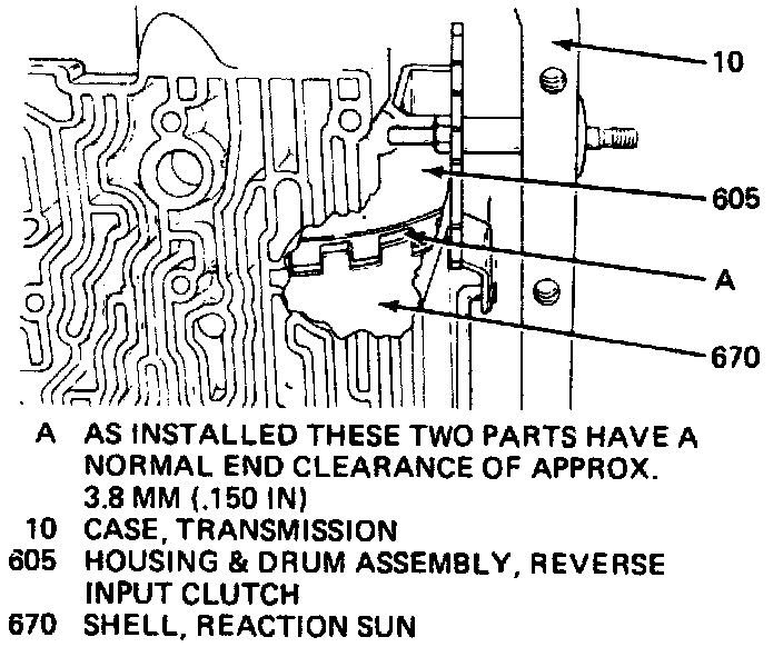 6. Install O-ring seal into groove in end of turbine shaft. There should be clearance between the reverse input clutch and reaction sun gear shell. Do not try to shim internal parts because of this clearance.