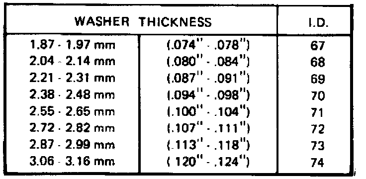 5. If endplay is not as specified, select the correct washer from chart. The selective washer which controls end play is located between input housing and thrust bearing on oil pump hub.