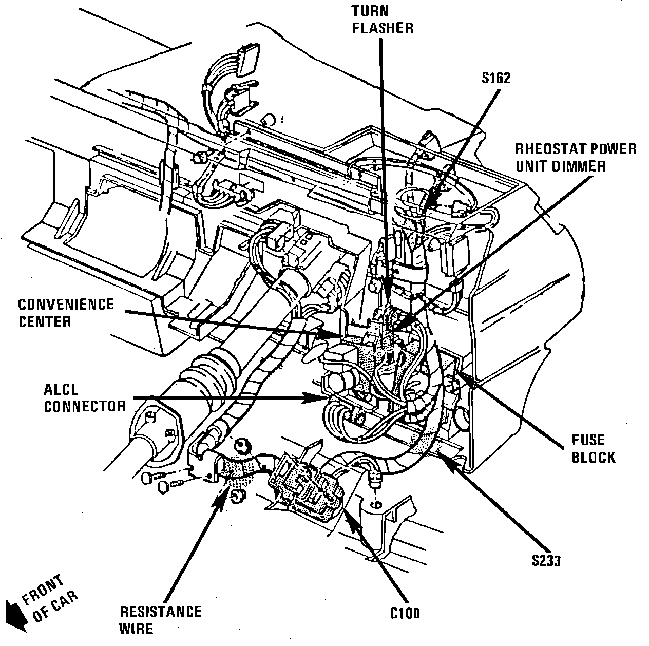 Behind I/P, LH Side Of Steering Column